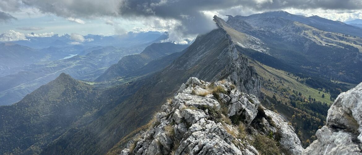 Le dimanche 13 octobre, nous partons pour une initiation à la course d’arête sur l’arête sud du Cornafion. Rendez-vous à 7h30 au club, on prend du matériel et on part. Une seule voiture suffit, nous somme cinq : les deux encadrants Étienne et Maxime, et trois néophytes, plutôt détendus et enthousiastes pour notre toute première fois.