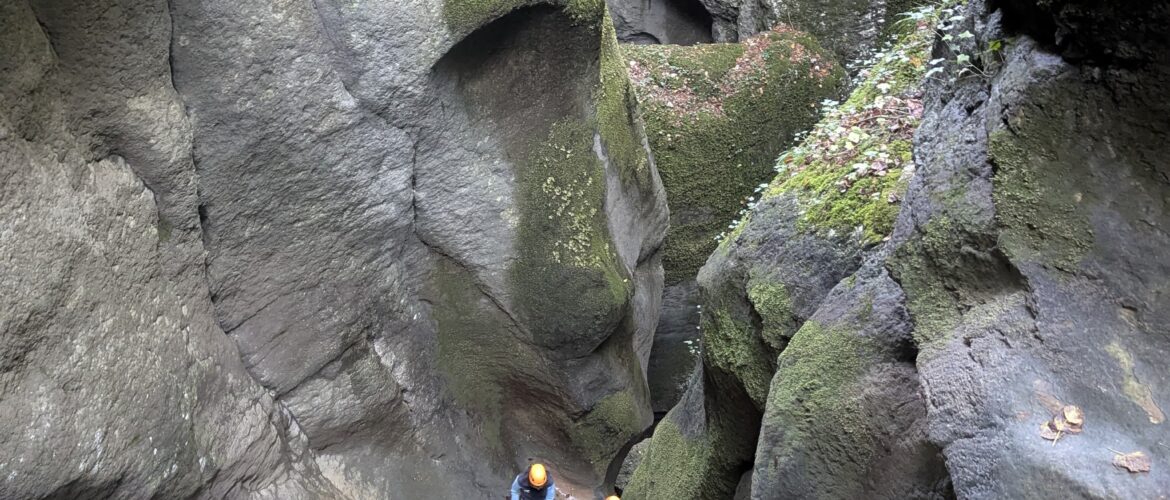 Ce samedi 11 octobre, nous sommes partis profiter de la dernière sortie canyon de l’année pour perfectionner nos manips de cordes. Au départ, nous étions 8 participants plus ou moins confirmés, encadrés par notre guide pour la journée, Fabien Mullet.