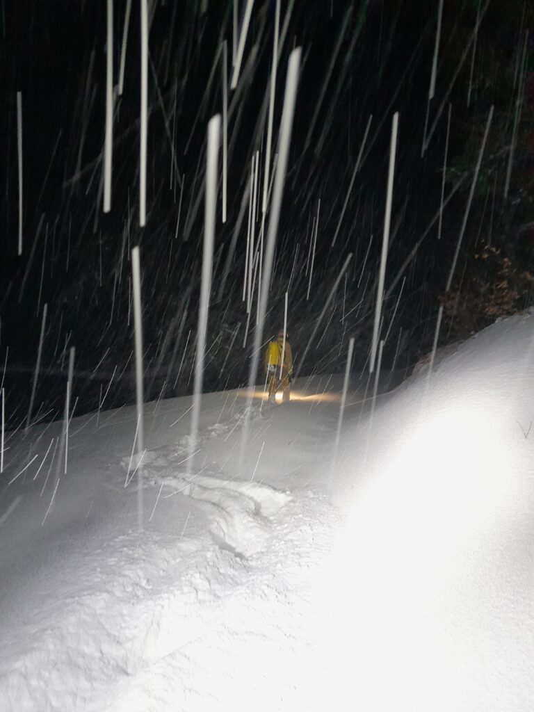 Les prévisions ne s’étaient pas trompées, et après un trajet (presque) sans encombre sur route blanche, on arrive à l’antenne où il faut difficilement sortir de la voiture pour finir le dernier kilomètre à pied dans un vent glacial, mais les pieds dans une neige fraîche magnifique.